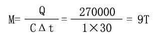 C-水的熱、t1-加熱前的水溫、t2-加熱后的水溫、i-在某壓力下進入管道汽水混合加熱器飽和蒸汽的熱焓kcal/kg(千卡/公斤)。D1-加熱器額定流量。